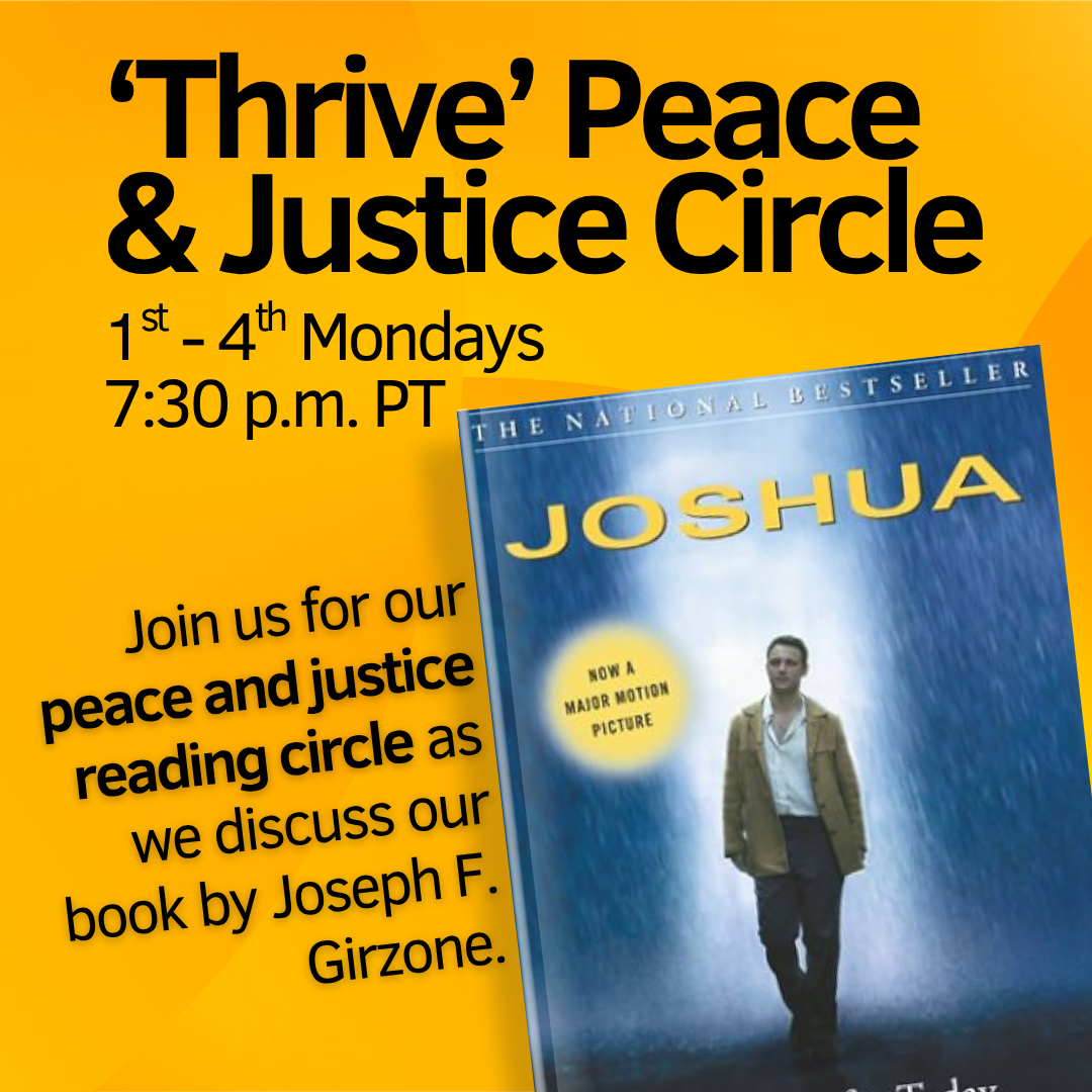 “Thrive” meets the 1st - 4th Monday nights every month from 7:30 - 9:00 p.m. Pacific. (We don’t meet on 5th Mondays.)
