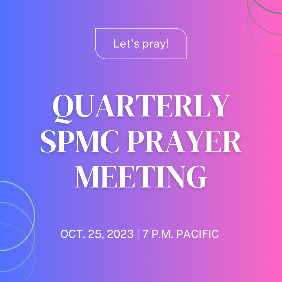 Beginning October 25, SPMC is planning to host a quarterly prayer meeting via Zoom. As covenant community, we are called to establish spaces where we can authentically show up for one another, sharing vulnerably and supporting with our whole hearts. We need each other, and this is just one way we can provide prayerful social support for those we know and love.